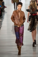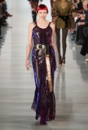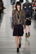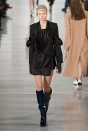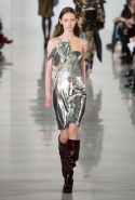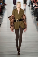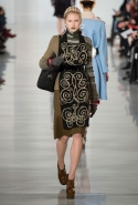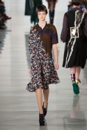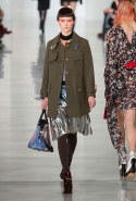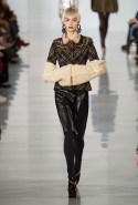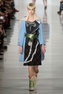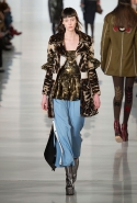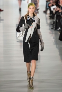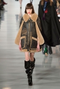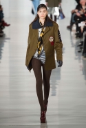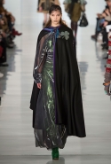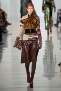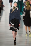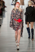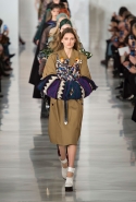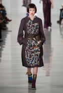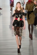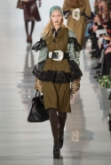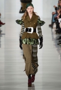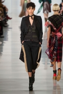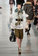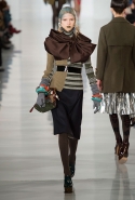 О бродяжническом духе сезона говорят, конечно, не только они. Просто это, как всегда, первое, что бросается в глаза. Еще здесь есть надевающиеся на рукава вязаные муфты, в которых продрогшие бродяжки, к которым Гальяно относится с такой нежностью, греют и прячут руки. И вещи, перешитые из обрывков и обрезков множества других вещей: военных мундиров (да, милитари у Maison Margiela не такое парадное, как у большинства дизайнеров в этом сезоне), кружевных блуз с воланами, вязаных полосатых половичков и детских свитерков. Последние оказались самым благодатным материалом: именно водолазки, сшитые из двух других, с разными рисунками, украшенные пышным бантом сверху, стали самой жизнеспособной вещью во всей коллекции, которую не хочется к тому же сразу как-то облегчить, убрав хотя бы некоторые из навязчивых деталей.