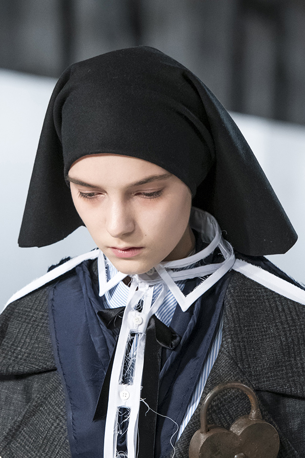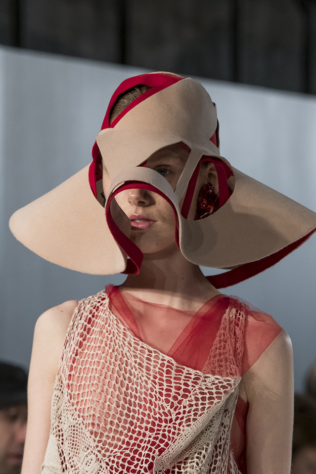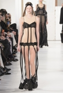 Деконструкция — одно из любимых увлечений Гальяно, и на этот раз он представил коллекцию, в которой деконструировано все — от шляп и платьев до юбок и штанов. Живые наброски, украшенные иллюстрациями женских лиц работы художника Бенджамина Шайна, выходили на подиум один за другим, напоминая то монахинь в разобранных рясах с вывернутыми наизнанку швами, то героинь авангардного фильма. Редкая возможность взглянуть изнутри на творческий процесс истинного гения от моды.
