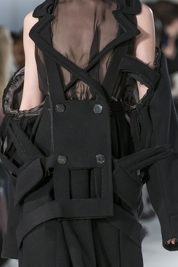 Основные элементы: деконструкция, наброски и иллюстрации, длинные пальто и короткие куртки, нежные неглиже и брутальные платья