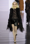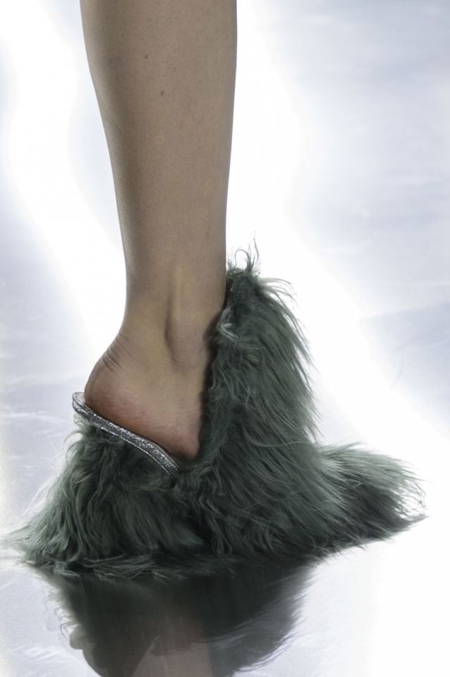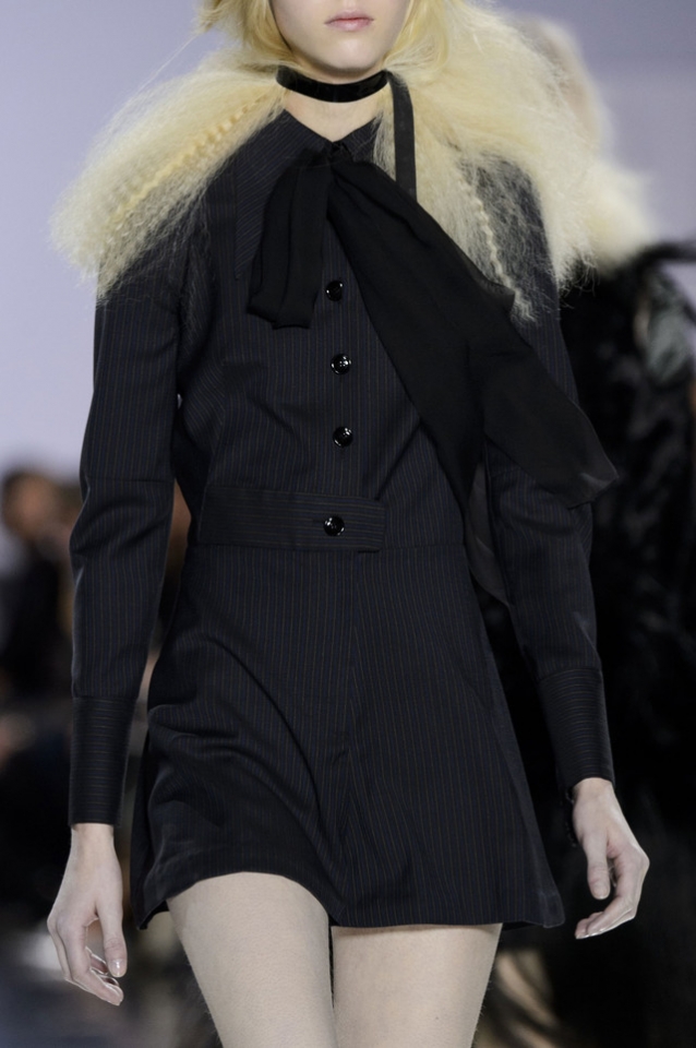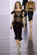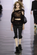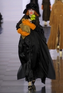 Впрочем, вещами из осенне-зимней коллекции Maison Margiela можно не только любоваться: многие из них могут быть вполне хороши и вне этих трогательных театральных сценок. Например, брючные костюмы с капри вместо привычных длинных брюк, длинные пальто, круглые атласные юбки со вставками шотландки, топы, демонстрирующие нижнее белье или его отсутствие, и даже расшитые перьями платья.