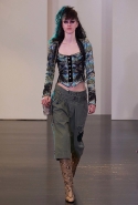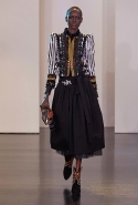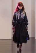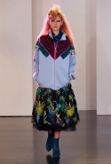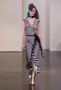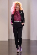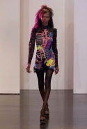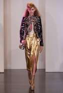 У Маран был зебровый принт? У Marc Jacobs будет его больше! А еще леопард, клетка, клетка из леопарда и зебры, цветочки, граффити-рисунки, пальмы, кошки, пускающие световые лучи из глаз, — все в самых разных кислотных цветах. К пайеточным нашивкам, камуфляжным штанищам и джинсовым костюмам с mom's jeans присоединяются пышные рококо-юбки, спортивные переливающиеся куртки, платья с неоновыми аппликациями и золотые сапоги на таких каблуках, которые позволят себе только самые отчаянные. Это, конечно, бессовестная игра на ностальгии, но Джейкобс как раз из тех самых отчаянных, которых не смутишь ничем, а именно в таком лихачестве они становятся по-настоящему хороши.
