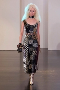 Последняя подиумная коллекция, однако, неожиданно оказалась по-настоящему веселой, точно как в старые добрые времена. Она была такой же никак не связанной с духом времени, такой же «выпадающей» из общей картины дня, но снова прекрасно чудаковатой, беспорядочной и тем и замечательной. Продолжилось то же и в межсезонье — в «круизе» снова смешалось все и сразу: самое яркое, чокнутое и совершенно дурацкое. Но это как раз то, что нужно.