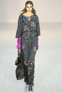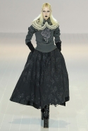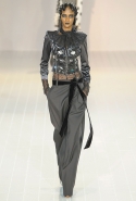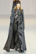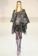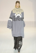 Гранжевые годы дизайнера неожиданным образом вернулись на подиум сегодня. Это, конечно, было совершенно не похоже на ту самую его знаменитую коллекцию. Панковская неряшливость и беспорядочность мешается здесь с образами готических принцесс, эмо-клетка и розовый — с хеллоуинскими костюмами ведьм, викторианские пышные воротники — с огромными толстовками, рукава которых доходят до колен. Но даже по этим толстовкам (и таким же суперобъемным курткам) можно отследить разницу между Джейкобсом и любым другим дизайнером: если обобщенный любой другой сделал бы толстовку такой, как будто она куплена в гигантском молле и к моменту выхода на подиум уже пережила многое, то американец, не скупясь, расшивает ее огромными пайетками, переливающимися перьями или мехом. В крайнем случае, добавляет сверху кружевной воротничок (размером с небольшую скатерть) или вышивает что-нибудь пайетками прямо на груди.