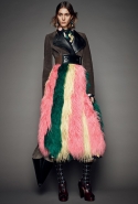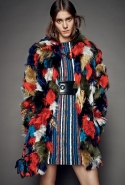 Сложносочиненные, странные Soundsuits Ника Кейва — в первую очередь скульптуры, объекты искусства, а не одежда в ее прикладном значении. Хотя поначалу американский художник и хотел сделать свою серию более приспособленной для жизни и даже собирался представить ее на подиуме одной из недель моды, от этой затеи он впоследствии отказался. "Поющие костюмы", весящие под десять килограммов, не под силу было бы носить даже средневековым рыцарям, что уж говорить о современных барышнях. Зато вдохновленная этой серией коллекция Marni для жизни очень даже пригодна, да и от других красочных и экстравагантных показов итальянской марки отличается не слишком. Сильнее всего влияние Кейва заметно в меховых выходах с длинными жилетами, шубками и даже юбкой из красочных клочков меха альпаки: у художника есть почти точь-в-точь такие же меховые объекты.