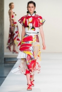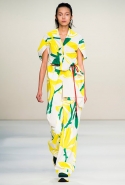 Нам, к сожалению, не довелось побывать на сегодняшней Marni Flower Market — чудо-ярмарке, организованной креативным директором Marni Консуэло Кастильони в честь 20-летнего юбилея марки. Но цветов всех расцветок и видов было достаточно сегодня и на подиуме. Ностальгические орнаменты и принты, особенно дорогие сердцу любого поклонника игривой и концептуальной итальянской марки, снова расцвели на вещах, от платьев до пестрых пальто. Это и ярко-желтые плоды лимонного дерева, и похожие на рисунки на витражах контурные цветы и густые вышивки словно с расшитых диванных подушек. Кастильони собирает разные блоки вместе, словно коллаж, и силуэты, напоминающие традиционные кимоно, разбиваются на множество острых и ярких кусков.