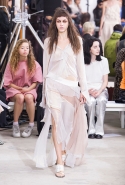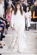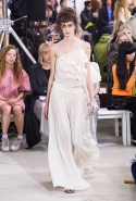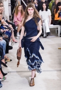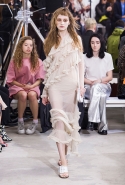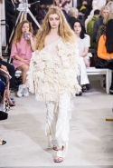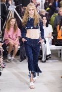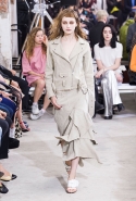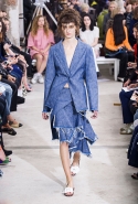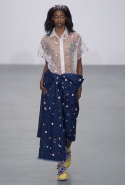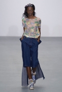 Когда пришла очередь денима, методы молодых дизайнеров изменились не слишком. Только к тем же кочанам из пышных (на этот раз джинсовых) оборок они подбирались чуть осторожнее, начав сперва с необработанных краев курток, постепенно перейдя к редким широким оборкам с такими же необработанными краями и только после этого показав самые взрывные образы. Именно так и выглядит новая романтика, создают которую дизайнеры поколения Marques'Almeida.