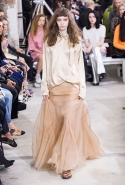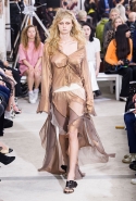 Они, подключившись к многочисленным сторонникам бельевого тренда, взяли полупрозрачные ночные рубашки и пижамы, тоненькие блузы и легковесные платья — и все это совершенно безжалостно покромсали, оставив на ткани рваные дыры. Уравновешивают эту нарочитую жестокость слои воздушных оборок, в бежевом цвете похожие на крем или кофейную пенку. Тот же трюк проделали Маркеш и Альмейда и с другими материалами: и с ярко-розовым шифоном, и с раскрашенным цветочками шелком, и даже с красной лакированной кожей.