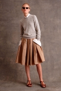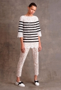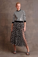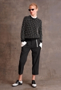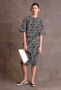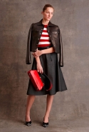 Еще одним дизайнером, несомненно, попавшим в наш wish-лист, стал Майкл Корс. Американец посвятил свою коллекцию transeason (напомним, Майкл не приемлет термин pre-fall) сразу трем женщинам: актрисам Джейн Хольцер, известной как Baby Jane, Вайноне Райдер и певице Тейлор Свифт. Охарактеризованные самим Корсом "От бикини до сапог" все 38 образов верны вложенной в них идее: летние платья идут в сочетании со свободного кроя пальто из добротной монгольской овчины, гипюровая туника-матроска — с белыми кружевными капри, шерстяная юбка ниже колена с накладными белыми карманами гармонирует с серебристым свитером, усыпанным жемчужными бусинами. По всей коллекции разбросаны графические полосы, разнокалиберный горох и несвойственные стилистике Корса банты. Палитра выдержана в классических американских оттенках красного, синего, белого и черного с добавлением графического жирафьего принта.