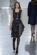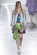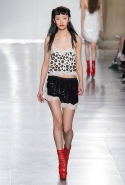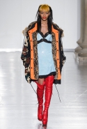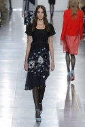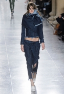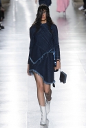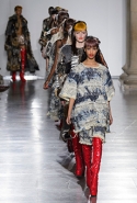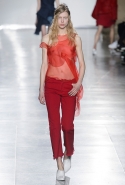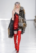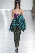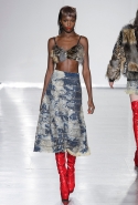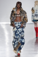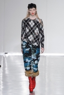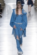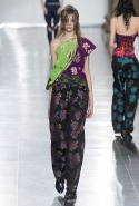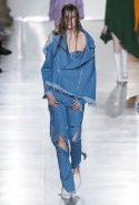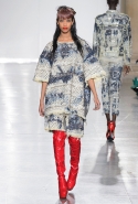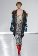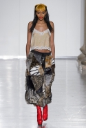 Марта Маркес и Пауло Альмейда, главные на нынешний момент специалисты по дениму во всем Лондоне, а может быть, и во всех четырех модных столицах, продолжают работать со знаковым для марки материалом. Джинсовые балахоны и платья, замысловатые костюмы с вырезами и драпировками и самые необычные джинсы из всех, что можно нынче найти в магазинах, — эти двое свое дело знают. А в компании со всеми чудными вещами из денима идут полупрозрачные комбинации, нежные шубы, словно расползающиеся по швам прямо на модели (предупреждаем: это лишь внешний эффект, неожиданное публичное обнажение владелице такой вещи на самом деле не угрожает), а также снова платья-коллажи, собранные из мерцающих ярких тканей с выгравированными рисунками.