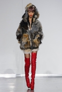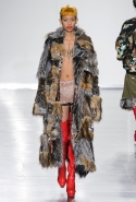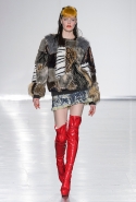 В итоге оба этих национальных характера — нарядная, но совершенно безудержная девушка и брутальный мужчина в камуфляже — слились в один, который и стал главным героем (героиней) новой коллекции. Здесь есть все: и пугающе-красные лаковые ботфорты до бедра, и нескромные надписи SEXY на груди, и леопард с тигром вперемешку с камуфляжем, и клочковатые шубы (а еще есть меховые штаны — вот он главный объект желания!), и блестки, и даже клетка с челночных сумок, которые мы не забыли и в 2015-м году. Эх, гуляй, русская душа!