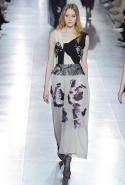 Сложная отделка, сочетания несочетаемого, вечерние и повседневные наряды, собранные словно из кусков совершенно разных порезанных на части платьев и мужских рубашек, — все это осенне-зимняя коллекция дома Michael Van der Ham. В одном выходе могут легко оказаться вместе и серо-голубой камуфляж, и плотная костюмная ткань в полоску или с едва заметными мерцающими частицами, и покрытые нежной вышивкой полупрозрачные ткани. Каждое из этих платьев-коллажей выглядит так, словно собрано не в ателье британского модного дома, а в Photoshop. И не командой швей и дизайнеров, а современным digital-художником.