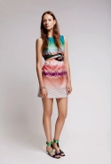 За вещами сложного кроя, невероятных объемов и больших идей обратиться стоит в магазины другой марки — Missoni же совершенно не об этом. Анджела Миссони в очередной раз представила коллекцию ярких и легких вещей, которые одним своим видом заставляют невольно задуматься о том, что пора завязывать с работой и отправляться в отпуск. Все светлое, свежее и максимально простое: платья, рубашки, брюки, юбки и прочие предметы одежды становятся интересными в первую очередь благодаря фирменной броской раскраске. Missoni славится своими вязаными загзагами и прочими мелкими графическими элементами, а в этом «круизе» они представлены во всем своем многообразии. Градиент, полоски, росчерки фломастера и пятна краски, животные и оптические принты, калейдоскопические рисунки — и буквально во всех цветах радуги.