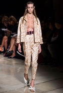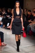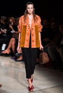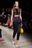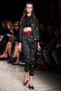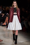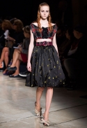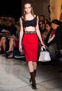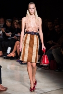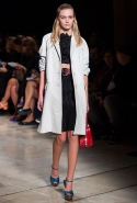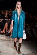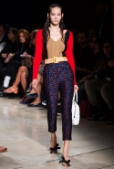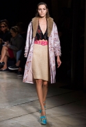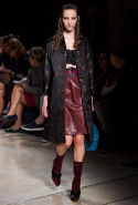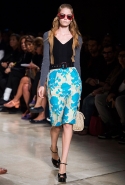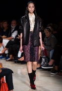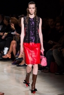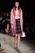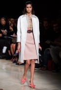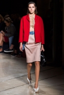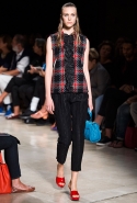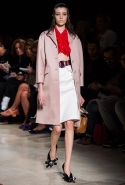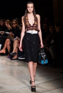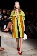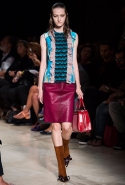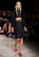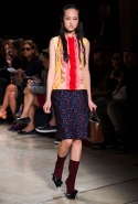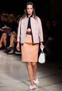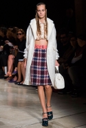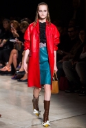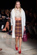 В прошлом сезоне наряды Miu Miu были похожи на костюмы девушек из "школьных" фильмов — так могла бы выглядеть героиня Мии Васиковской в вансентовском "Не сдавайся", с еще большей долей вероятности — девушка в красном пальто из "Субмарины". На этот раз Миучча Прада, кажется, взялась за героинь чуть постарше. Поэтому вместо задорных мини-платьев, пластиковых ярких дождевиков и таких же непромокаемых сапожек они проходят перед зрителями в юбках-карандашах и кроп-топах, а талии утягивают широкими контрастными поясами.