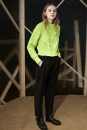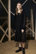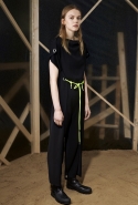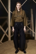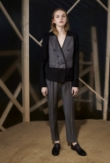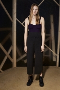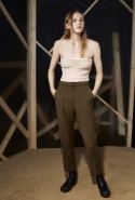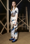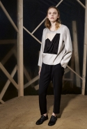 Вторая часть — вещи, напоминающие одежду для походов. Полуджинсовки-полудубленки, плащи-пыльники и, наконец, свитшот с пейзажем, собранным из красиво задрапированных кусков ткани, — черные складки изображают горы, молочный прямоугольник — небо, а все остальное покрашено в жемчужно-серый. Третья же серия вдохновлена одеждой, которая обычно остается запертой в стенах спальных комнат, — пижамами и нижним бельем. Брючные костюмы явно пижамного кроя, зато с атласными лацканами, соседствуют с топами-бюстье, но каждый из этих нарядов кажется неплохим вариантом для любого вечернего выхода.