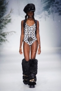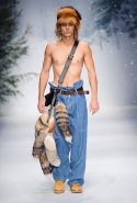 Зимние холода — не повод для уныния. Для Джереми Скотта уж точно. Лучше пустить оранжевый цветок по серебристой парке (парадный вариант с аналогичным принтом — приталенный фрак), укутаться в пледы или, выказывая вопиющее неуважение к заморозкам, облачиться в полупрозрачный комбинезон. Однотонность позволительна только в случае золотистых и серебристых "металлических" предметов гардероба. К услугам тех, кто предпочитает образ более свободный, джинсы в формате oversize, удерживаемые в зоне приличия только широким ремнем, или почти аскетичный пуловер с говорящей надписью из искусственного меха: "100% natural".