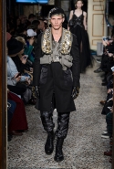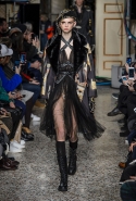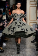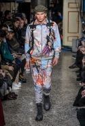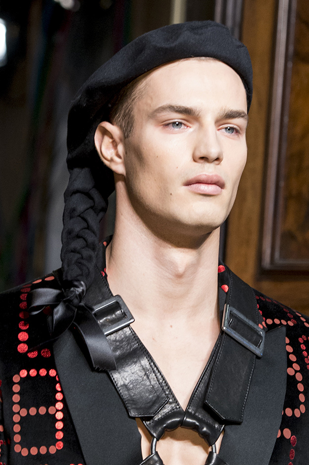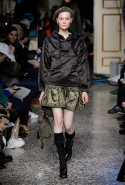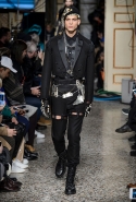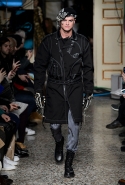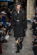 Джереми Скотт огорчен военным положением в мире: «Моя страна в упадке. Я хотел показать, что нам нужно сражаться за то, во что мы верим, а не сидеть сложа руки». Это он о Трампе. Возможно, и хорошо, что Трамп победил: Скотт отбросил уже изрядно надоевшие всем шутки с кейсами для iPhone в виде картошки и создал мрачную, траурную коллекцию, наполненную черным юмором. Есть еще порох в пороховницах.