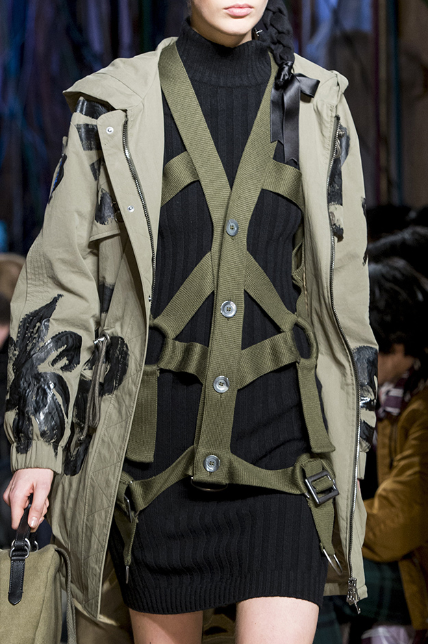 Стайлинговые приемы: шнуровка, брюки, заправленные в ботинки, имитация парашютных жилетов