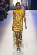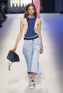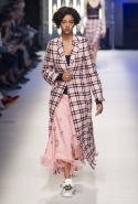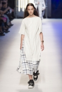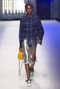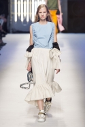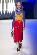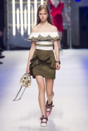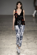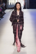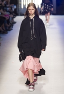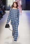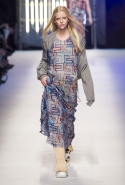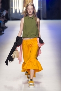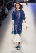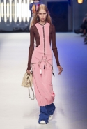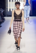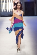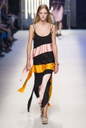 Помните, мы уже говорили, что в рейтинге тенденций нового сезона клетка явно уступает место полоске? Так вот, это единственный общий тренд, который Джорджетти нарушил: у него клетки, причем разной, куда больше. Зато все остальные важные моменты, которые мы уже успели отметить в ходе сезона, на месте. Ленты с узлами у него превращаются в гигантские и пышные банты по бокам, а иногда и рваные полосы ткани по подолу. Гранж, как одно из проявлений снова модных 90-х, прослеживается и в использовании этой клетки, и в необработанных кромках тканей, и в целой череде откровенно гранжевых костюмов, обвешанных металлическими цепочками. И вариации на тему платьев-комбинаций — яркие, собранные из разноцветных шелковых полос — здесь тоже, конечно, есть. И все вместе это выглядит не предсказуемо и очевидно, а достаточно изобретательно.