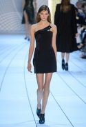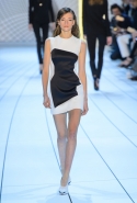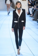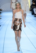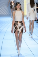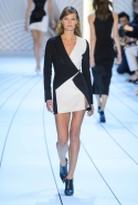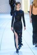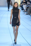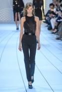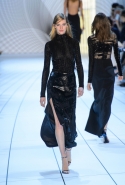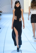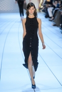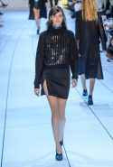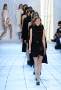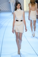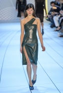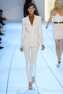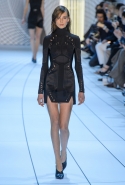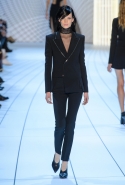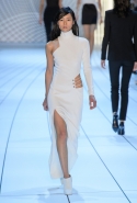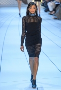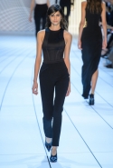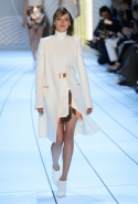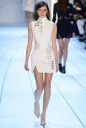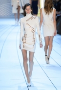 На этот раз Давид Кома не рисует новую фигуру поверх естественных линий, как поступил на своем весенне-летнем шоу, — тогда неожиданные резкие вырезы и прозрачные вставки пусть и в лучшую сторону, но все-таки искажали пропорции. А сейчас грузинский дизайнер решил оставить силуэт чуть более натуральным, затронув его только косметически. Поэтому на мини- и макси-платьях, идеально облегающих тело, появляются не прорези, а простая отделка: в кожаные вещи Кома «вживляет» кольца и другие металлические детали, выкладывая из них узоры и несложные геометричные рисунки. Из-за этих металлических украшений девушки, и без того слишком идеальные, становятся похожими на андроидов или людей будущего, для которых технологии стали не просто привычными, а в буквальном смысле родными, — усиливает впечатление и белый цвет, который в коллекции преобладает даже над обязательным черным.