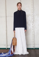 Межсезонная коллекция вышла простой, с очень четкой и очевидной идеей: дизайнеры марки решили вывезти своих поклонников к морю. Причем сразу на машине времени, перенеся их в 20-е годы XX века. Именно на 20—30-е годы пришлось первое явление спортивной одежды в большой моде — производством купальных костюмов, больше не похожих на чехлы, и спортивных джемперов и юбок, в которых можно играть в теннис и в принципе заниматься почти любым видом спорта, занялись и большие дизайнеры. Их наработками воспользовалась сейчас и команда Mulberry: полосатые платья похожи на купальники первой половины XX века (до бикини им, несмотря на продвинутость, было далеко), удобные костюмы с юбками и брюками, не стесняющими движений, свободные платья. А также традиционно морские рыбацкие куртки, свитера и плащи в сине-белой гамме, белые брюки и прочие вещи для тех, кто не прочь прикинуться моряком — только, конечно, не всерьез. Разнообразие в стан этих простых вещей вносят фактуры и принты: те же платья, например, украшает абстрактный узор, в котором с трудом можно разглядеть парящих над морем чаек.