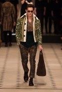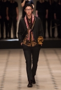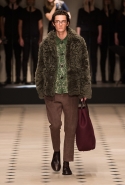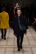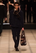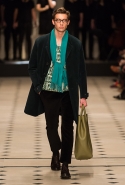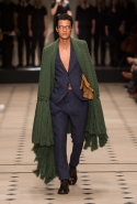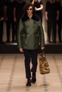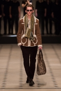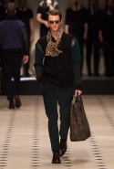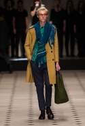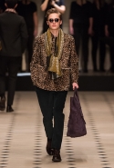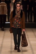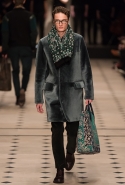 К холодным сезонам 2015 Burberry подготовили коллекцию, которую можно было бы превратить в покадровую анимированную трансформацию образа. Вот традиционный приверженец строгого стиля в черном брючном костюме, деликатно разбавленном милитари-принтом рубашки и шарфом с этническим рисунком. Другой образ предлагает облачиться в теплую дубленку с геометричным рисунком швов, еще один — в массивную кожаную куртку темно-изумрудного цвета.