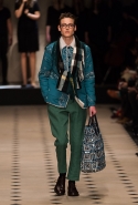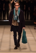 Шаг за шагом герой Burberry все больше раскрепощается — он не прочь щегольнуть леопардовым пальто, эффектно перетянутым на талии, надеть меховой жилет или облачиться в шубу, прихватив с собой ярко-желтую сумку. Вот уже по его рубашкам и свитерам ползут все более причудливые принты, а на дубленке распускаются экзотические цветы. При этом элегантность никуда не исчезает, а только подчеркивается шарфом, повязанным с расчетливой небрежностью, и интеллигентного вида очками. Метаморфозы накатывают одна на другую, как волны во время шторма (впрочем, не слишком бурного), но цельности коллекция при этом не теряет. Быть может, потому что во всех любителях моды чередуются желание застегнуться на все пуговицы и спрятаться и тяга к эффектному появлению.