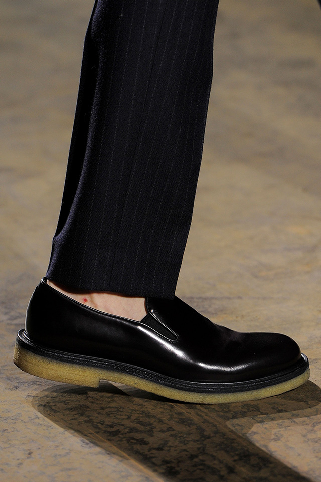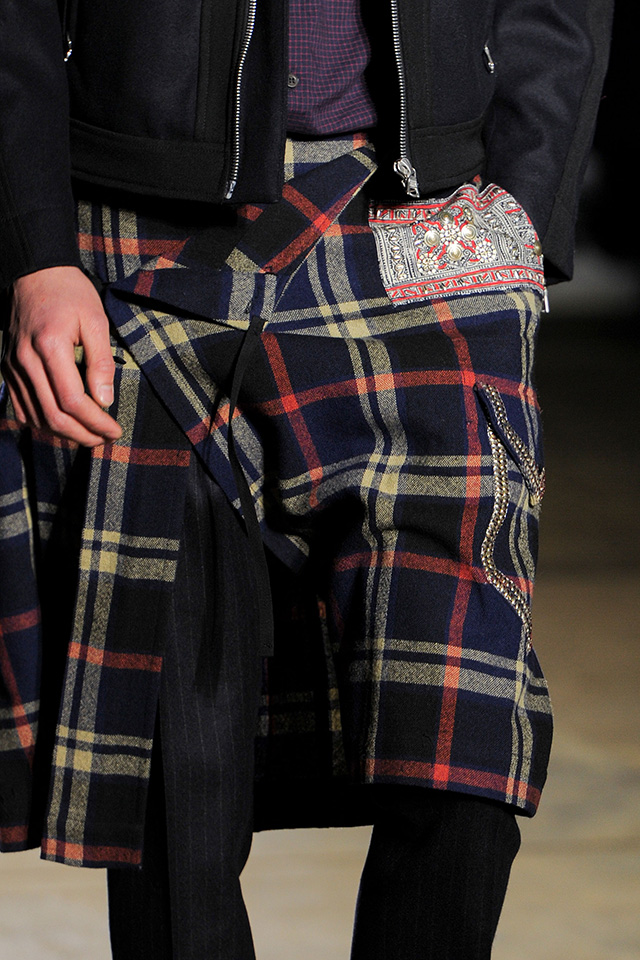 Звучит описание коллекции куда более эксцентрично, чем на самом деле все смотрится — даже юбки, вечные возмутители общественного спокойствия. Почему-то молодые люди, одетые в вещи Dries Van Noten, на подиуме выглядят так гармонично и умиротворенно, что никому и в голову не приходят традиционные во время недель моды жалобы в духе "А где же настоящие мужчины?.. И для кого все это шьют?".
