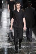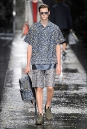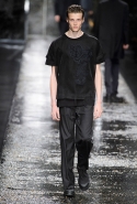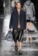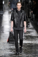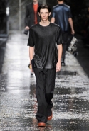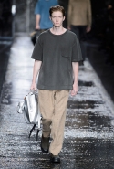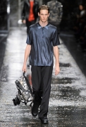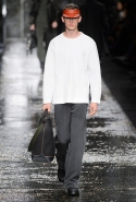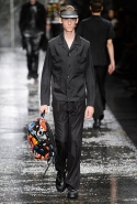 Не забывая о том, что Fendi всегда был люксовым домом, даже простые вещи просты здесь только на первый взгляд. Воротнички рубашек, оказывается, поблескивают глиттером, футболки не безвольно висят на плечах, а держат заданную гипертрофированно объемную форму, а в покраске некоторых курток неожиданно бросается в глаза прием деграде. Возвращаются и знаменитые «маленькие монстры» итальянской марки: они вновь появляются на крупных кожаных сумках.