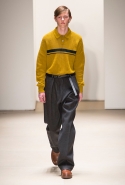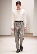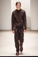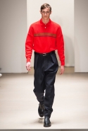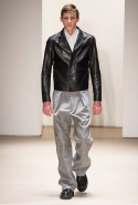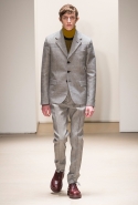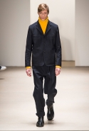 Весенне-летняя женская коллекция стала для Родольфо Пальялунга дебютной на руководящем посту в модном доме. А в Милане дизайнер показал публике нового мужчину Jil Sander: хотя кардинально нового привнес в знакомый образ не так много. К традиционным для марки минималистичным, избавленным от деталей и лишних подробностей силуэтам добавились только яркие краски, которые редко были в приоритете в стенах модного дома. К традиционному для мужского гардероба сочетанию серого, черного и коричневого цветов добавились тона более яркие: красный и бордовый, оранжевый и горчично-желтый, синий. Особенно жизнерадостными эти оттенки назвать опять-таки сложно, потому что представлены последние либо в сильно затемненном, либо в приглушенном вариантах, но некоторое разнообразие в однородный ход действия они вносят. Ту же роль играет и горизонтальная цветная полоска, которая встречается всего в четырех-пяти вещах из всей коллекции, и почти невидимые тонкие полосы, покрывающие брючные костюмы.
