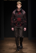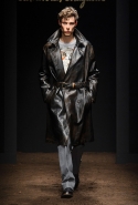 Когда, приложив усилия, все-таки отвлекаешься от созерцания закутанных мужских шей, становится ясно, что и в целом коллекция получилась крайне интересной. Дизайнеры итальянского дома не заигрывают с яркими цветами, храня верность традиционной осенней цветовой гамме, а внимание переключают на текстуры. Рельефная крупная вязка, лакированная кожа и кожа дубленая, искусственно состаренная и потертая, ворсистая клетчатая шерсть, кое-где попадается и объемная отделка из золотистой "стружки" или неброская вышивка — все вместе это вызывает не удивление, а скорее уважение. И даже в скупой сдержанности цветочных вышивок и других узоров, периодически мелькающих на отдельных вещах, есть что-то невероятно мужественное. А юмора коллекции добавляют звери, то и дело появляющиеся в кадре: например, кудрявая бычья голова на боку у пальто или сердитая сова, нахохлившаяся на свитшоте.