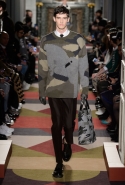 Главную роль в коллекции, конечно, играет геометрия. Идею цветных панно и квадратов и треугольников для Марии Грации Кьюри и Пьерпаоло Пиччоли подсказала австралийская художница Эстер Стюарт. А дизайнеры ловко подхватили заданную линию, поддержав геометрию цвета геометрией кроя. На темных пальто горят солнечно-желтые квадраты карманов, а кожаные вставки на верхней одежде подчеркивают естественные линии тела, четче обрисовывая контуры и заставляя его выглядеть чуть лучше. Но помимо очевидных вещей дизайнеры запрятали в некоторых нарядах другие, намного более хитрые "пасхалки" для своих поклонников. Например, на одном из свитеров с камуфляжным рисунком в нагромождении пятен скрывается голубь мира — правда, не белый, а серый. И если хорошенько присмотреться к серым участкам, сразу становится видно и его маленький черный клювик, и глаз — черную бусинку.