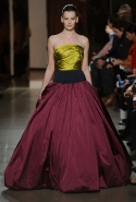 Брать управление на себя Коппингу пришлось раньше, чем планировалось, но первая коллекция стала абсолютной удачей. Хотя с самим Оскаром де ла Рентой британцу, по его собственным словам, довелось встретиться всего несколько раз, схожие взгляды на моду и нежное отношение к своим клиенткам, очевидно, роднят обоих дизайнеров. Готовясь к своему дебюту, новый креативный директор обратился к лучшим и знаковым предметам из коллекций самого де ла Ренты — костюмам с юбками, парадным пальто и платьям — и представил собственные их версии, адаптированные для более юной аудитории. Практически у каждого пышного бального платья есть своя облегченная версия: если бы команда Oscar de la Renta, последовав примеру Lanvin, решила снять собственное видео с участием модных мам и их дочек, несколько нарядов идеально подошли бы для такого случая. Но лучше всего бы это сработало в случае двух платьев из бордовой и золотой сияющих тканей: более «юная» версия, несмотря на ретронастроение, просто невозможно хороша.