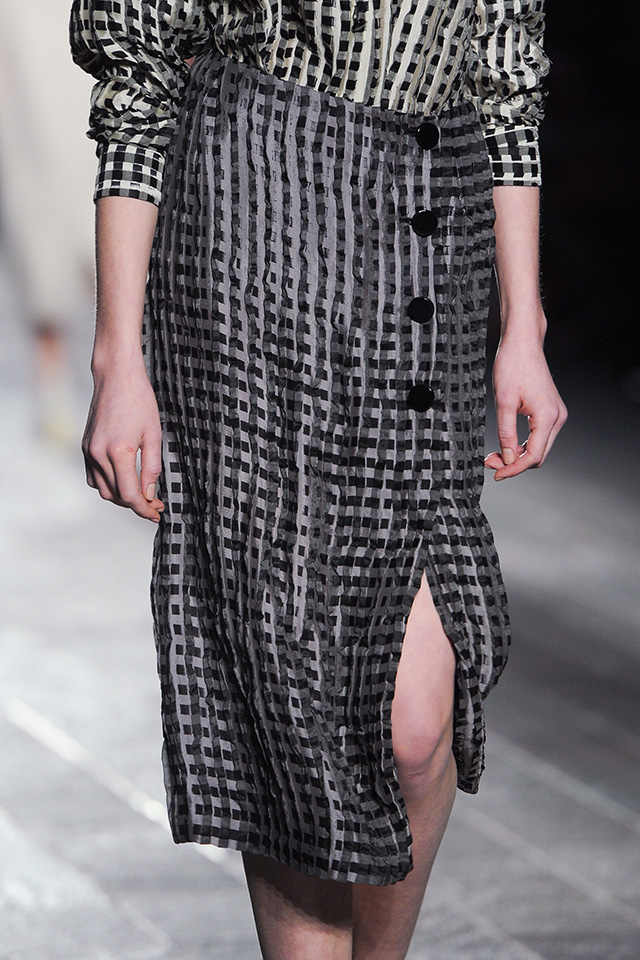 А уж о том, как идут девушкам мужские рубашки, и вовсе не стоит напоминать лишний раз: об этом прекрасно знают все, кто с утра, вскочив с постели, накидывал вместо футболки и треников рубашку своего бойфренда. Не забыл об этом и Пол Смит: он представил сразу несколько платьев, обыгрывающих узнаваемый силуэт, — от самых простых до более замысловатых, ловко маскирующихся под привычные платья-футляры.