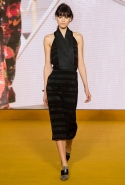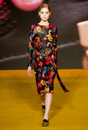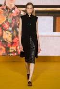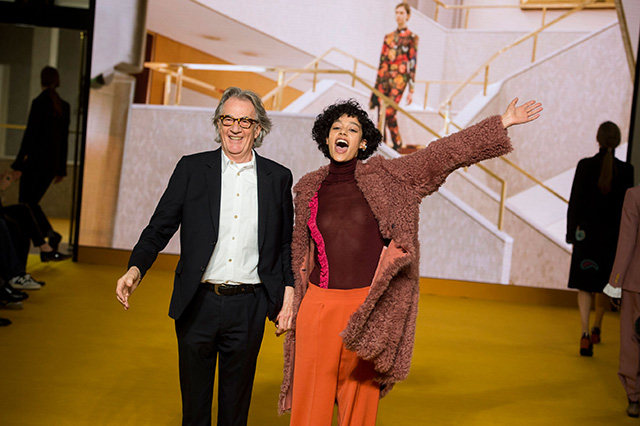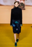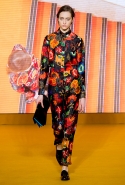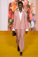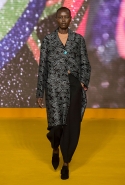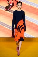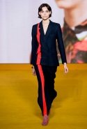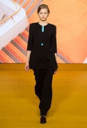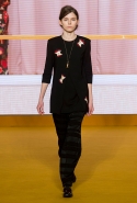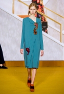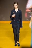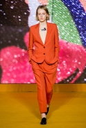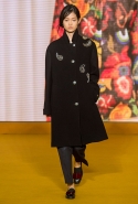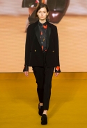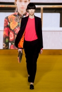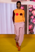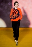 Свободная, яркая, веселая, юная — такой получилась осенне-зимняя коллекция марки. Кажется, что Пол Смит решил дать волю самым юным своим сотрудникам — или сам вспомнил собственное детство и поделки из цветной бумаги, которые непременно есть в жизни каждого счастливого ребенка. Многие наряды кажутся сделанными именно из нее: вырезанные детали, будь это нежно-розовые широкие штаны или костюм в буйных психоделических цветах, просто наклеены на лист ярко-желтого картона. И все, несмотря на достаточно объемные силуэты, из-за этого выглядит как будто двумерным. Это совсем не плохо, даже наоборот — ощущение неожиданное, но почему-то ужасно радостное (хотя как не радоваться, когда вокруг столько цвета? Решительно невозможно).