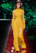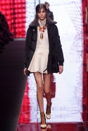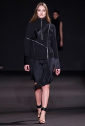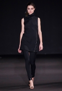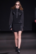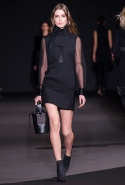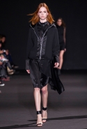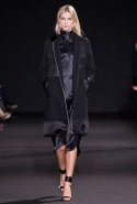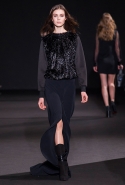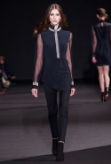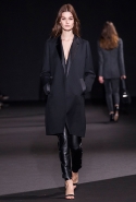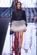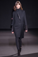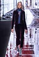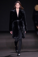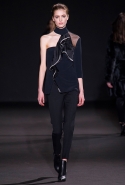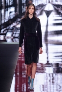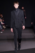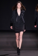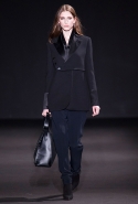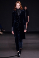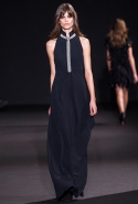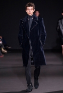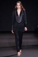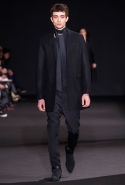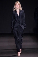 Еще одна черная коллекция, на этот раз от дизайнера Costume National Эннио Капасы, с редкими вставками других, но таких же темных цветов — серого и синего. Вместе с девушками вновь вышли на подиум и молодые люди — в нарядах, которые мало отличались от их девичьих версий. Костюмы мужского кроя, как с почти пижамного вида брюками, так и с брюками из кожи, узкими, как легинсы, неожиданно элегантные парки, темно-синий бархат и жакеты, сшитые по образу и подобию кожаных косух, — представителям обоих полов все эти вещи удивительно идут. Девушкам же вдобавок достались еще и более вечерние наряды с перьями, сдержанно торжественными вставками из пайеток и, опять же, с заимствованиями из мужских «выходных» смокингов. В финальных выходах были замечены даже своеобразные галстуки, превратившиеся в сочетании с платьями в пол в сияющие ожерелья.