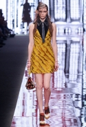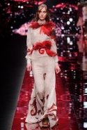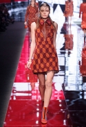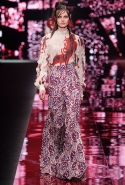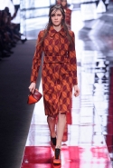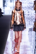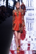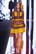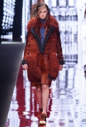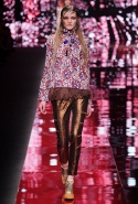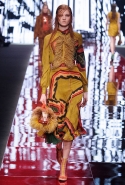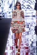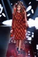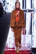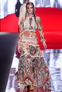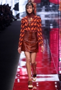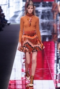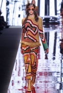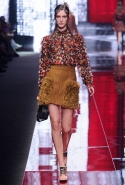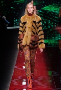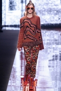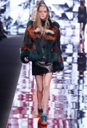 Команда Just Cavalli тоже по-своему осваивает период на стыке 60-х и 70-х годов прошлого века. Графичные принты, комбинезоны, коротенькие юбки-трапеции и свитера с высоким воротом — по силуэтам все весьма традиционно, но Роберто Кавалли не был бы самим собой, если бы не решил добавить к знакомым простым силуэтам собственной непременной роскоши. Поэтому воздушные блузы, кардиганы, юбки и представители всех прочих категорий одежды в миг обросли пышными перьями, новые хиппи нарядились в яркие меха, замша покрылась заклепками, а дубленки — позолотой.