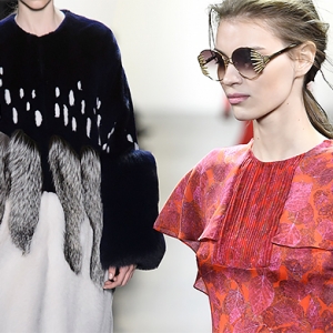 Что касается силуэтов, то дизайнер не изменяет узнаваемому коду марки: мы видим приталенные платья с басками, юбки А-силуэта, брючные костюмы, свободного кроя пальто и теплые накидки из шерсти и меха, а также большое количество воланов.