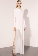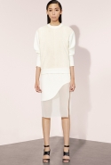 Красота новой коллекции Prabal Gurung в ее простоте: дизайнер рисует свои вещи самыми лаконичными и чистыми линиями. При этом они вовсе не выглядят скучно и незамысловато: Гурунгу удается создать идеальную иллюзию, порой обращаясь к довольно неожиданным приемам кроя. Даже самые нарядные платья с широкими юбками в пол — легкие и чистые из-за сочетания черных и белых блоков, а прозрачные вставки оживляют все монолитно-белые вещи, которые без этого могли бы наскучить уже в середине довольно большой коллекции. Нарушают всеобщую лаконичность разве что объемные свитера крупной вязки с корсетной шнуровкой на груди, но и они только выгодно подчеркивают легкость окружающих их минималистичных вещей.