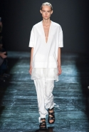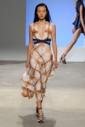 Клетка, пижамы и пастель — так мы бы описали весеннюю коллекцию Thakoon, если описать ее попросили бы всего в трех словах. Этих трех слов было бы, в принципе, вполне достаточно, если бы до показа Такун Паничгул не объявил о слиянии двух своих линий: основной и «младшей», Thakoon Addition. Может быть, из-за этого слияния большая часть вещей и выглядят такими простыми, что становится почти скучно — для того чтобы найти баланс, вероятно, требуется время.