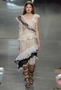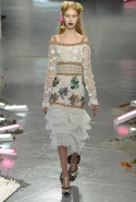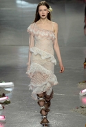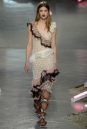 Сказки у сестер Маллеви получаются красивыми, но, несмотря на пайетки и богатство отделки, довольно мрачными. Это неудивительно: почти все волшебные истории на самом деле такие и есть, так что дизайнеры Rodarte не хотят обманывать зрительниц. Да и в их мрачной романтике, неизменно сочетающейся с почти кутюрно тщательным подходом, всегда есть что-то особенно завораживающее. Тем более когда в первом ряду сидит самая преданная поклонница марки Кирстен Данст (а она не пропускает показов сестер никогда), трудно не «примерять» все эти платья, словно созданные для ковровых дорожек, на нее. А на Данст все творения команды дома выглядят едва ли не более впечатляюще, чем на моделях с подиума.