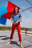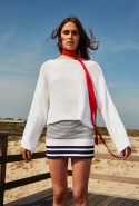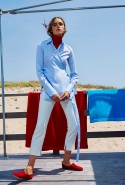 Розетте Гетти, как мы заметили и по ее предыдущим коллекциям, прекрасно удаются простые и лаконичные вещи — от ее коллекций буквально веет спокойствием и совершенным безразличием ко всем последним и остромодным тенденциям. То же самое можно сказать и про сегодняшний «круиз». На этот раз дизайнер обращается к 20—30-м годам прошлого века, когда Америку впервые захватила мода на спортивную одежду. Но при этом однозначной спортивной направленности ни в снимках, ни в самих предметах не чувствуется. Белые брюки, свободные брючные костюмы и несколько костюмов с шортами, платья-рубашки и сарафаны, легкое пальто и вещи из белой и темно-синей сетки, полоски, отсылающие не то к тельняшкам, не то к пляжным полотенцам, — все выглядит совершенно свободно и, что важно, уместно и в городе, и на отдыхе.