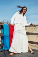 Новую круизную коллекцию Rosetta Getty можно с уверенностью назвать собранием классики «круизов». Даже лукбук снят в лучших традициях: модель неспешно прогуливается по морскому берегу, потом лежит, раскинувшись на песке почти морской звездочкой, а прохладный ветер с моря треплет ее длинные волосы. Кажется, что большая часть кадров снята не специально нанятым для этого фотографом, по окончании рабочего дня еще и получившим за это гонорар, а спутником девушки, с которым она приехала сюда, чтобы провести вдвоем один солнечный летний день. Поддерживает эту иллюзию и одежда.