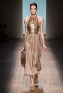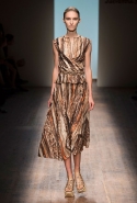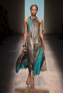 Повседневные вещи, от расшитых жакетов и длинных юбок до ярких платьев, очень хороши, но внимание в первую очередь приковывают более вечерние наряды. Когда Джорнетти добавляет вещам немного блеска, будь то покрытые нежнейшей позолотой трикотажные вещи, вкрапление металлических нитей или вышивка стеклярусом, оторвать от них взгляд становится решительно невозможно. То же касается и красивых принтов, происхождение которых с первого взгляда определить трудно: сперва кажется, что это арт-версия знакомых анималистических принтов, потом — импровизация в духе абстракционизма.