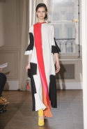 Основные элементы: платья и костюмы с яркими мотивами, авангардное изящество и минимализм, узкие силуэты