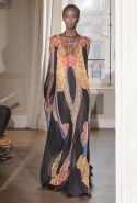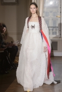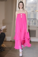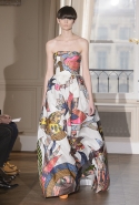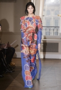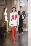 Нелегко вести дом, наследие которого так специфично. На создание новой коллекции Бертрана Гийона вдохновили две фигуры – самой Эльзы Скьяпарелли и Ги Бурдена, чьи фантастические изображения были неразрывно связаны с домом. Смелые принты на простых формах, абстрактные композиции и перья в волосах, столь любимые Эльзой подвески в виде птичьей клетки и внушительные цветы на платьях, отсылающие к работам китайского сюрреалиста Ах Сианя. Однако в новой коллекции нет ничего лишнего — это сюрреализм минималистичный и чистый, как будто только что из-под пера Дали.