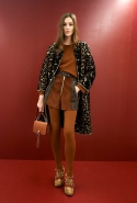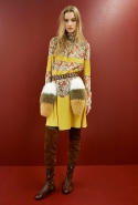 Замшевые ботфорты вкупе с ажурными колготками и леопардовым пальто с капюшоном помогут сохранить эффектный вид, в то же время защищая от переменчивой погоды. А жизнерадостное платье, чередующее солнечно-желтый оттенок и цветочный принт, с игривыми меховыми хвостиками напомнит о том, что летние дни ушли не навсегда.