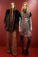 Не обошлась коллекция и без комбинезонов: белого в мелкую звездочку, черного, усыпанного крапинками-икринками, и, конечно, "цветочного", схваченного на талии черной лентой-бантом. За роскошь в коллекции отвечают всевозможные предметы из меха: от объемной бордовой шубы до короткой меховой куртки, от накидки до пушистых жилетов, боа и сумочек.