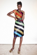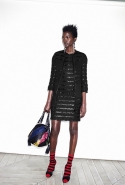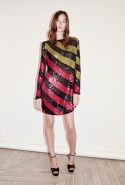Настроение у новой круизной коллекции совершенно беззаботное и очевидно тусовочное. Вместе с короткими платьицами-трапециями идут платья, переливающиеся красочными разводами пайеток, вместе с белыми морскими костюмами и традиционно сильными вещами из денима — длинные юбки и выкрашенные в самые неожиданные цвета меховые накидки. Одного только взгляда на большую часть вещей хватает для того, чтобы зарядиться энергией вечеринок. И хотя сравнение с посетительницами знаменитой «Студии 54» давно набило оскомину, лучше него в этом случае придумать сложно.