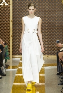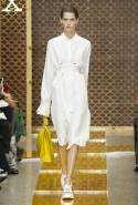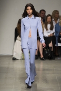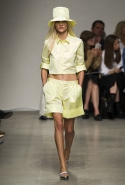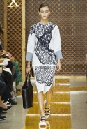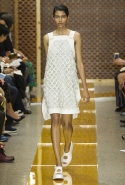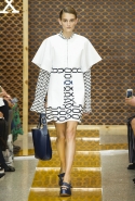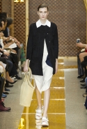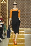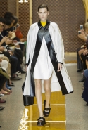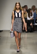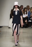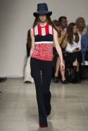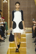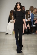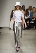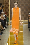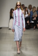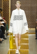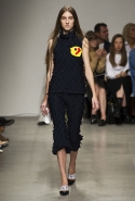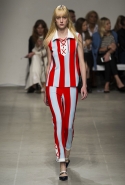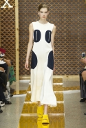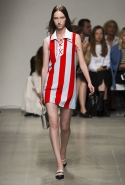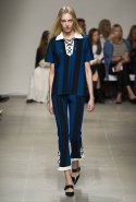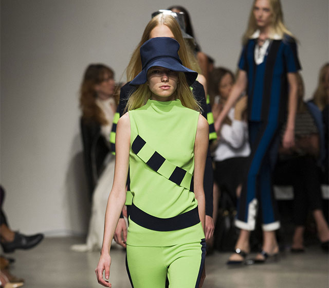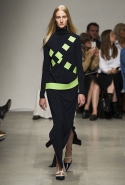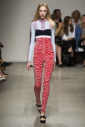 Круги, полосы и нестандартные сочетания чистых базовых цветов (только вместо красного дизайнеры используют оранжевый) — таково краткое резюме новой коллекции Sportmax. Звучать это может скучно, но на деле не дает заскучать ни на секунду. Круги здесь, например, появляются не только в виде контрастных вставок на платьях и пальто, но и в переработанной сетке, в Лондоне ставшей одной из главных тенденций. Команду марки не устраивают простые квадраты, и свою сетку она сплетает из кружков и овалов, а из получившегося материала шьет блузы, прозрачные брюки и платья. Те же овалы соединяются в длинные цепи, которые графичным принтом ложатся на самые разные вещи. А сетка в уже классическом ее варианте снова появляется в коллекции совершенно неожиданно: дизайнеры используют принт, похожий на двухмерное изображение ее застывшей в полете 3D-модели.