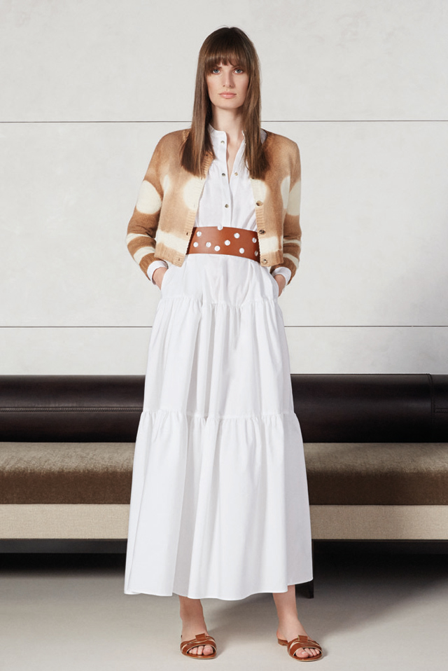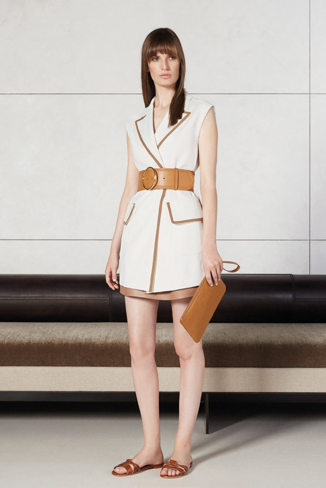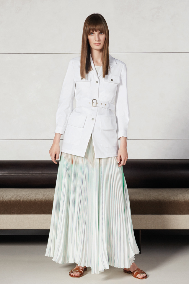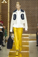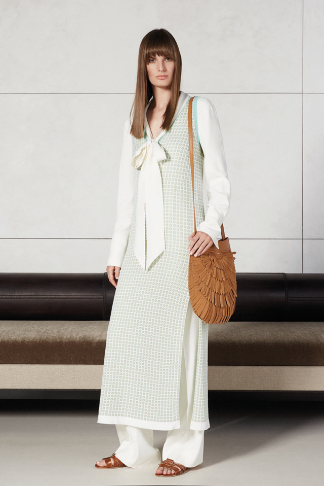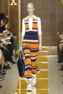 Переворота в духе Pucci или Gucci не состоялось — и это к лучшему: еще одна, уже третья марка, переделанная в таком же духе, была бы перебором. Арбессер не стал делать как будто бы ничего особенного, поначалу и вовсе ограничившись набором простых силуэтов со спортивными деталями и раскрасив их на свой вкус. Полоска контрастных цветов (голубой с красным, зеленый с синим), психоделические волны, зигзаги — иногда в ярких красках, иногда в сочетаниях пастельных тонов. Пастельные варианты получились, пожалуй, интересными: особенно необычно выглядит трио «белый + желтый + нежно-сиреневый».